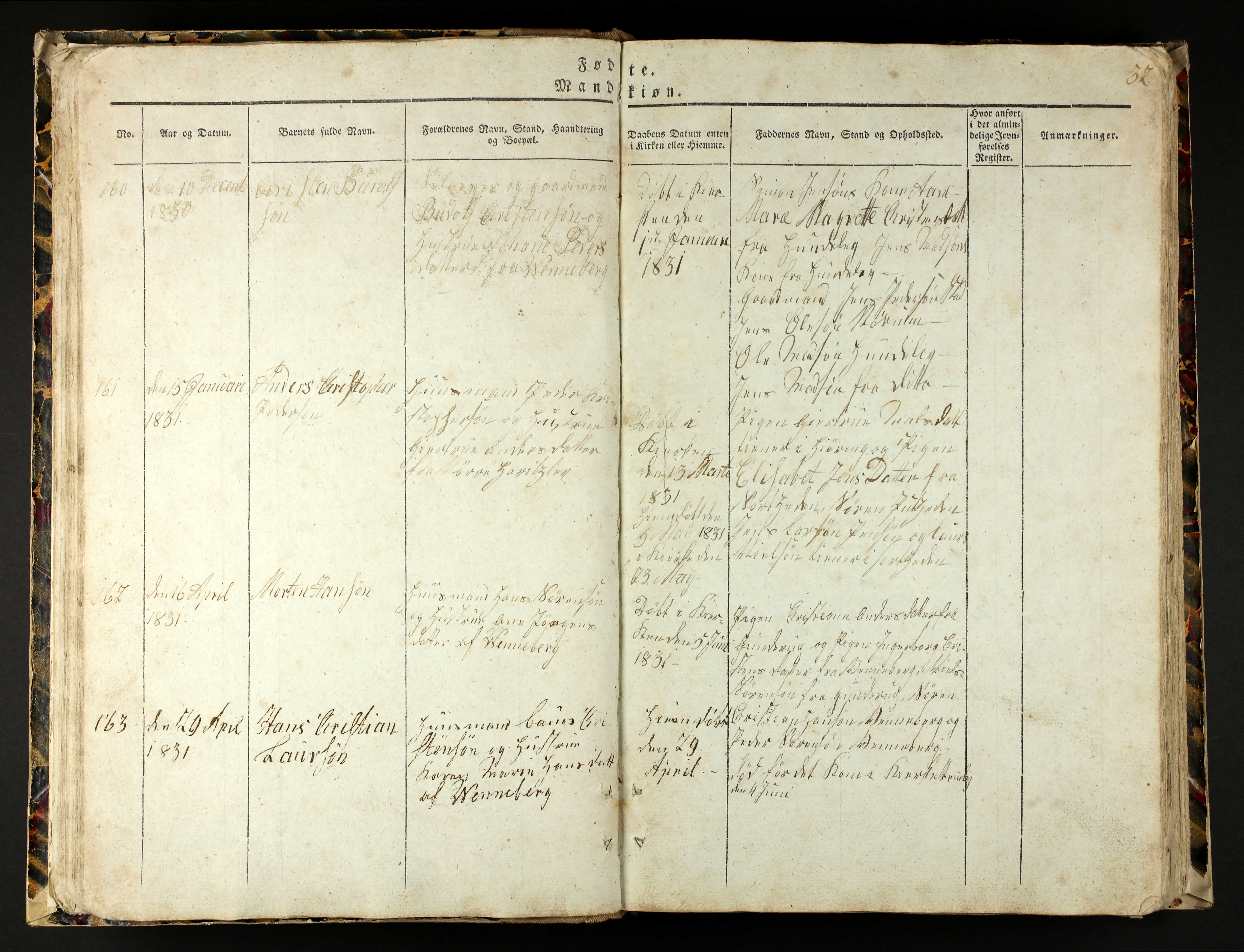 Kontraministerialbog, Vennebjerg, Vennebjerg, Hjørring, Fødte Mandekjøn 1814-1840, folio 32, nr. 162, 1831-06-05, Arkiv: Rigsarkivet, Arkivalier Online. Udarb. dato: 17 jan. 2022. Troværdighed: 2.