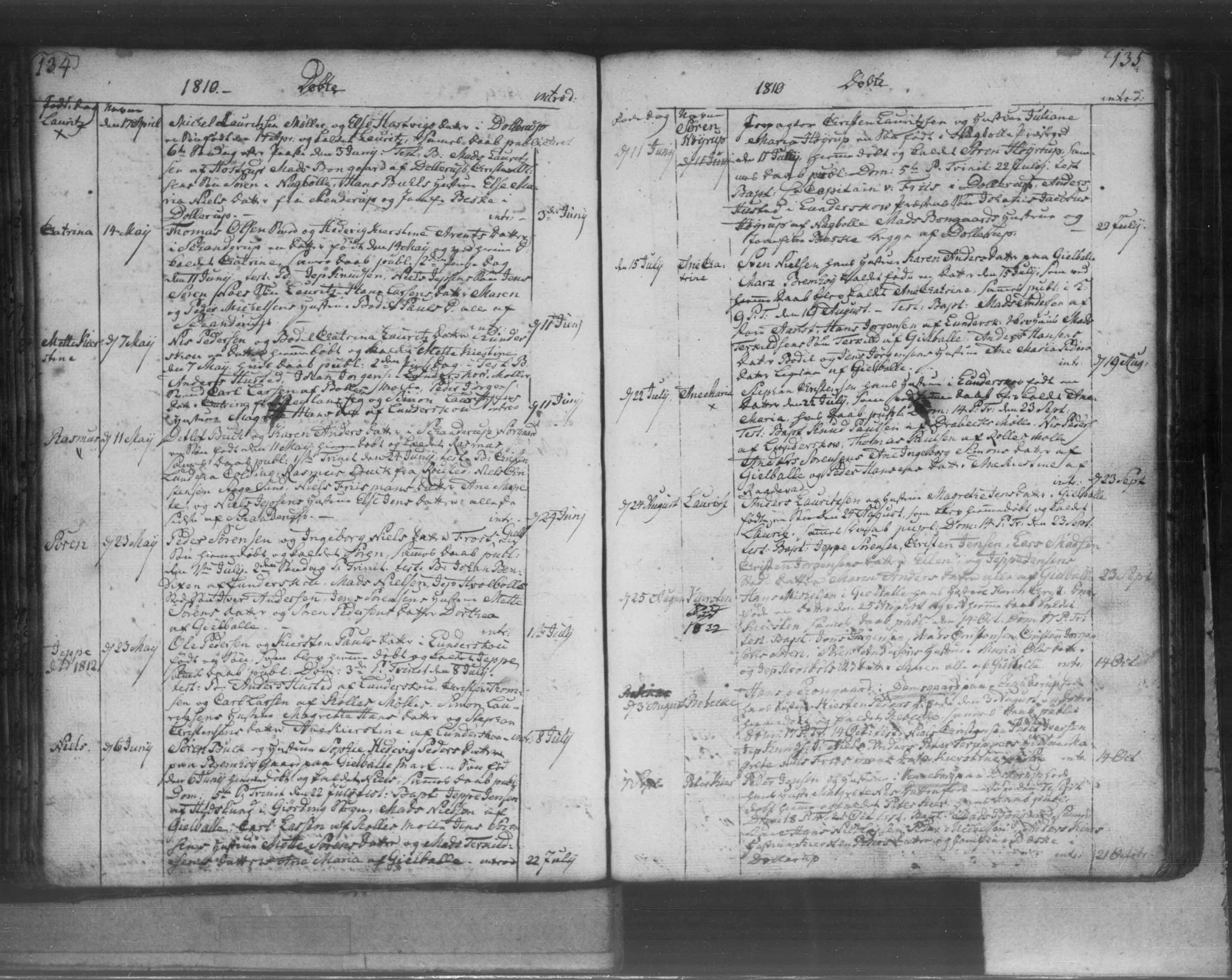 Enesteministerialbog, Skanderup, Anst, Ribe, Døbte 1758-1810, side 134, 1810-06-24, Arkiv: Rigsarkivet, Arkivalier Online. Udarb. dato: 7 jun. 2025. Troværdighed: 4.