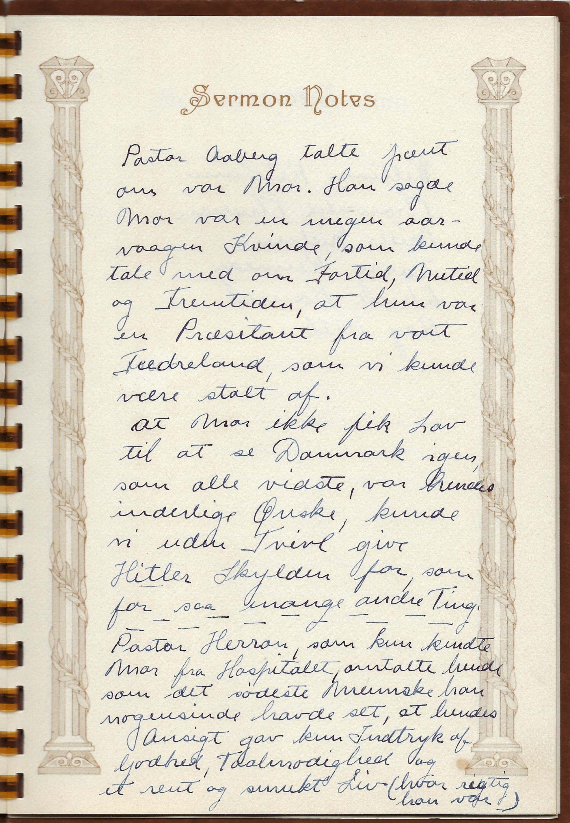 At Mor ikke fik lov til at se Danmark igen, som alle vidste, var hendes inderlige Ønske, kunde vi uden Tvivl give Hitler Skylden for, som for saa mange andre Ting.