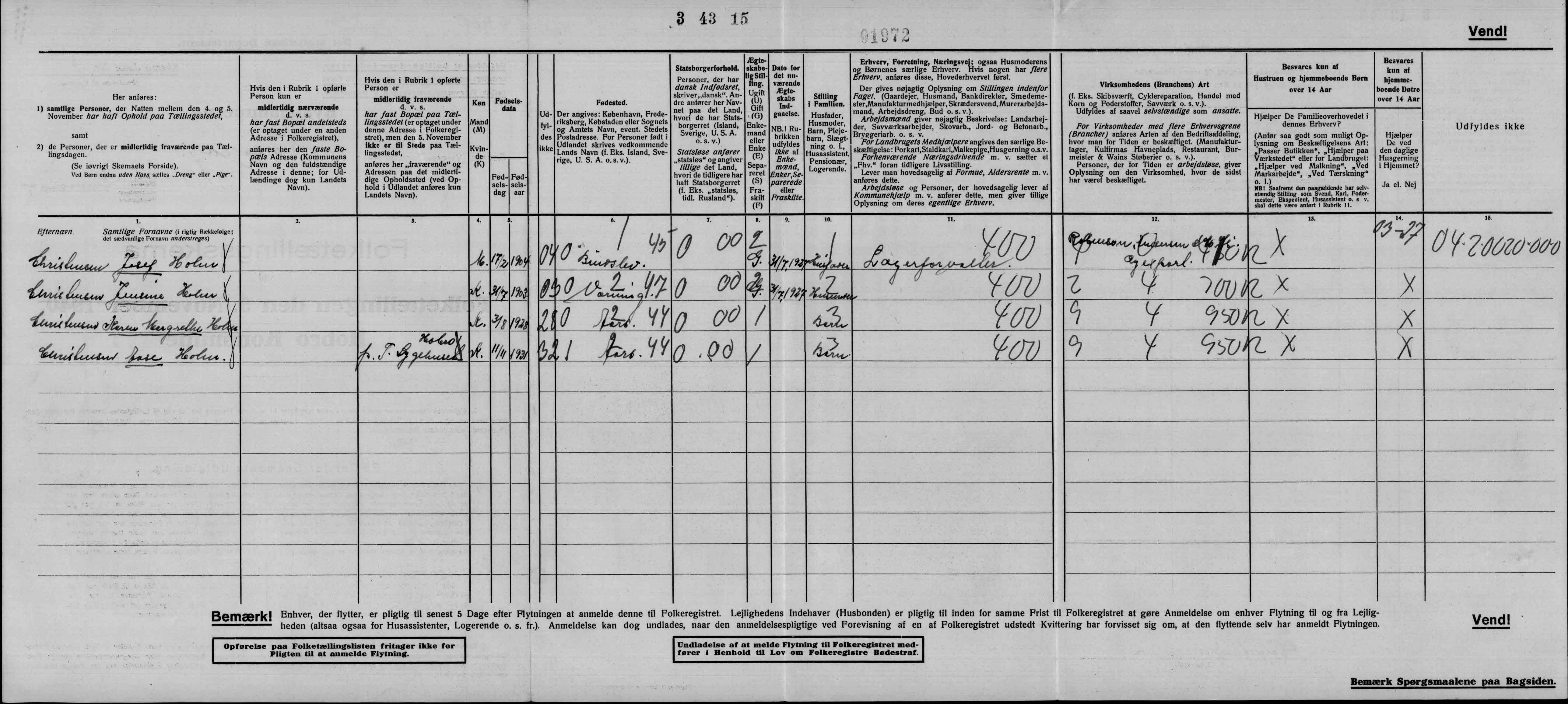 Ane Marie Buch Larsen (ungpigenavn: Buch); Virksomhedens art: I hjemmet; Stilling: Husmoder.