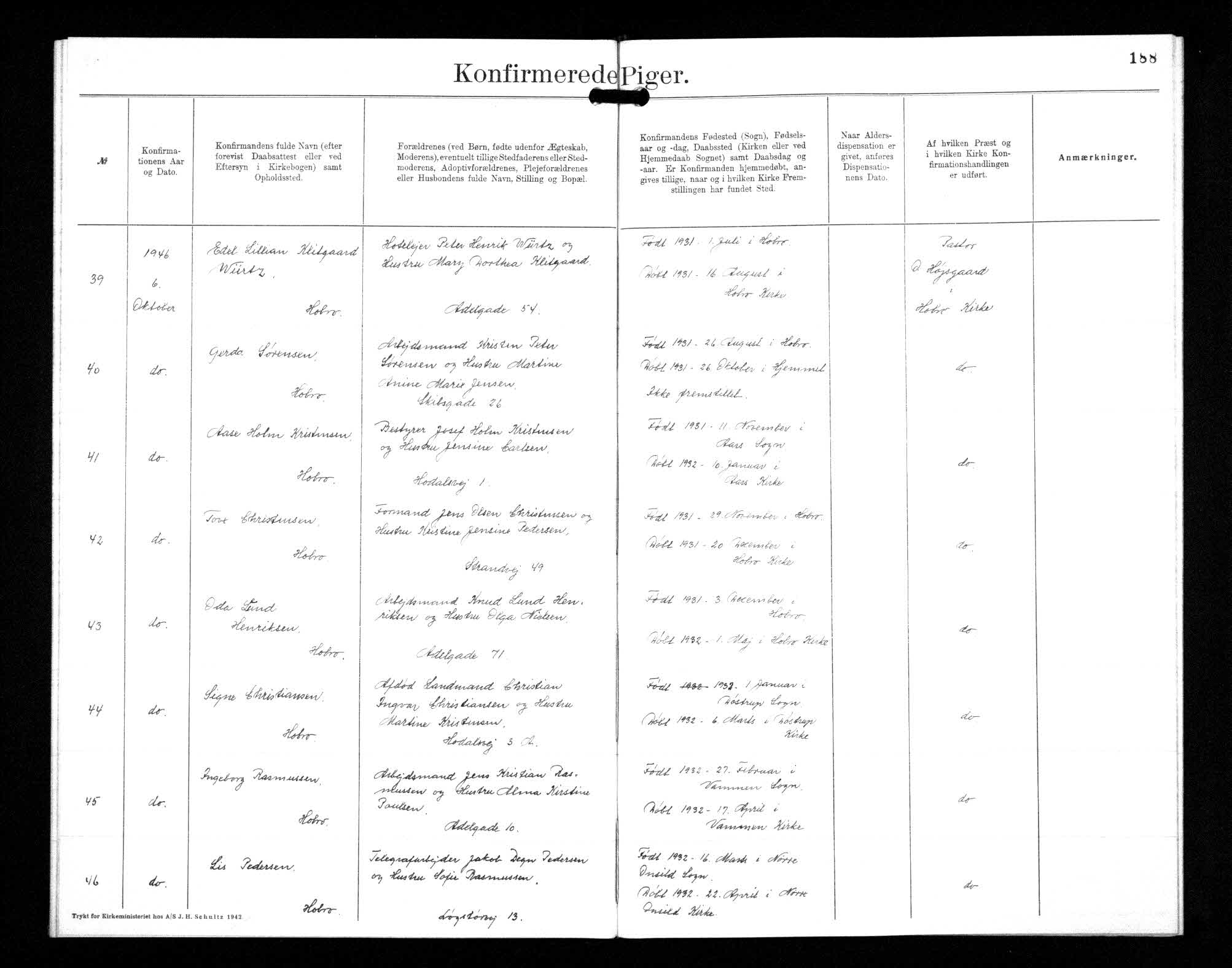 Hobro Købstads Sogn, Kontraministerialbog 1944 FKVD - 1946 FKVD, side 188, 19461006, Udarb. dato: 19 okt. 2018. Troværdighed: 4.