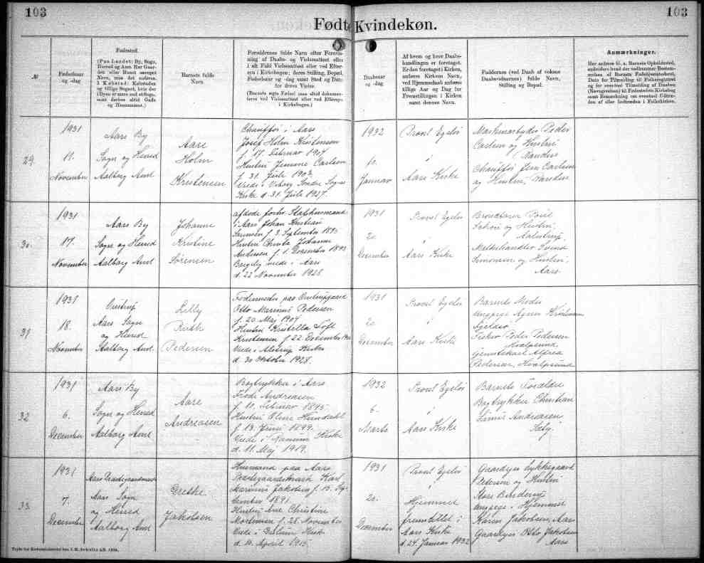 Kirkebog 1931 103 Års, Års, Ålborg, Udarb. dato: 10 feb. 2026. Troværdighed: 4.