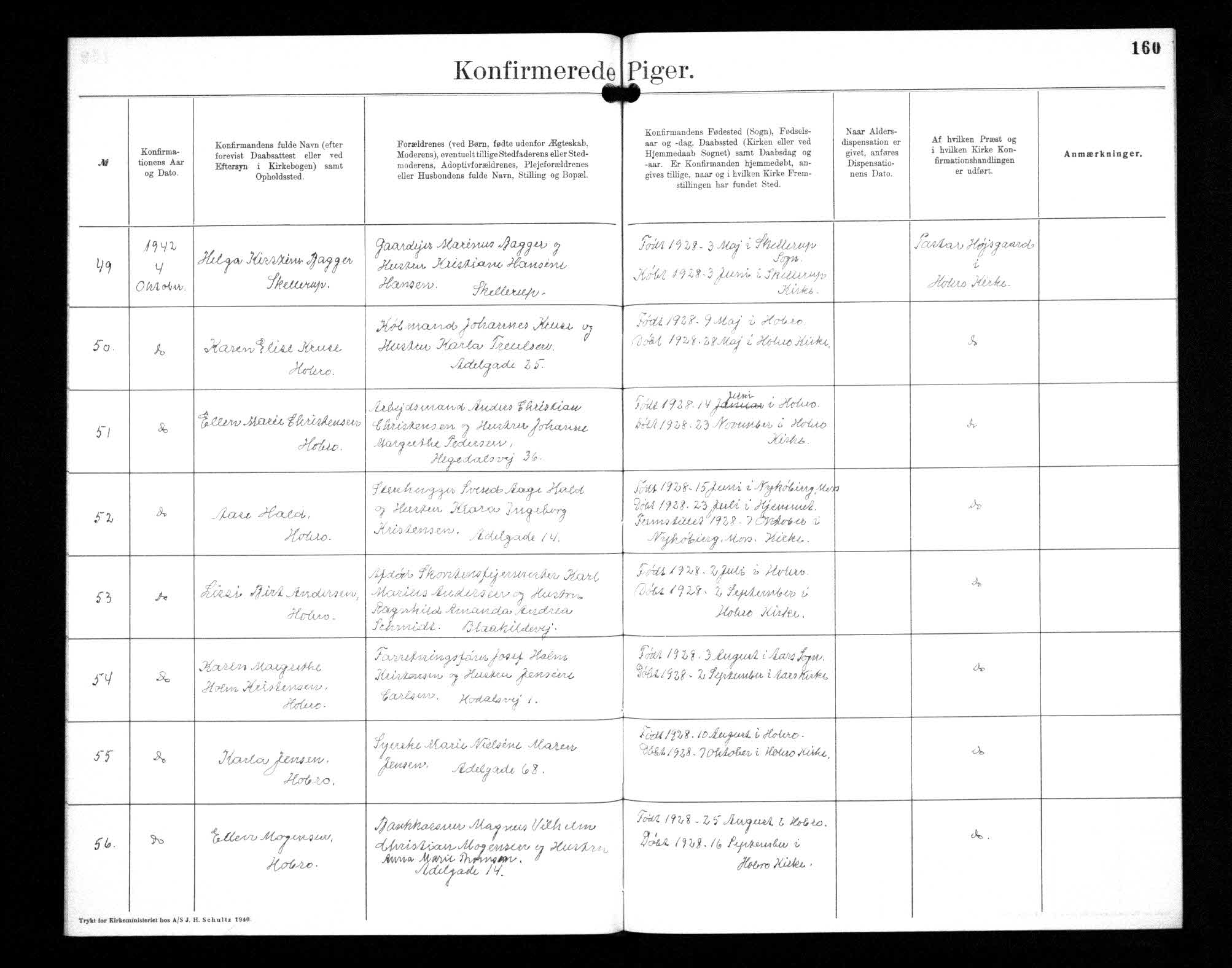 Hobro Købstads Sogn Kontraministerialbog 1942 FKVD - 1944 FKVD, side 160, 19421004, Udarb. dato: 19 okt. 2018. Troværdighed: 4.