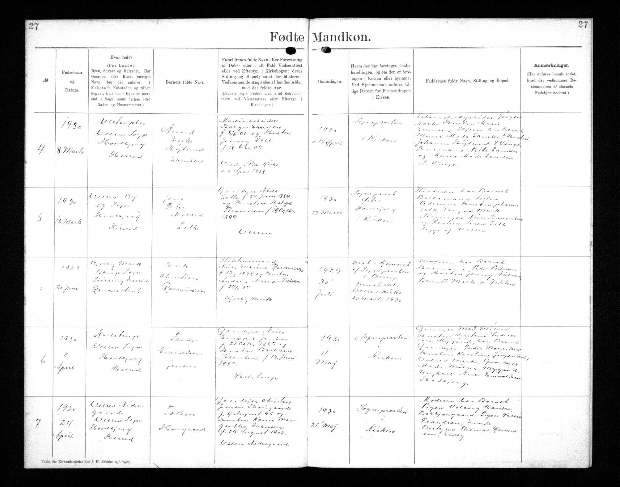 Kirkebog 1930 27 Vellev, Houlbjerg, Viborg Amt, Udarb. dato: 19 nov. 2018. Troværdighed: 4.