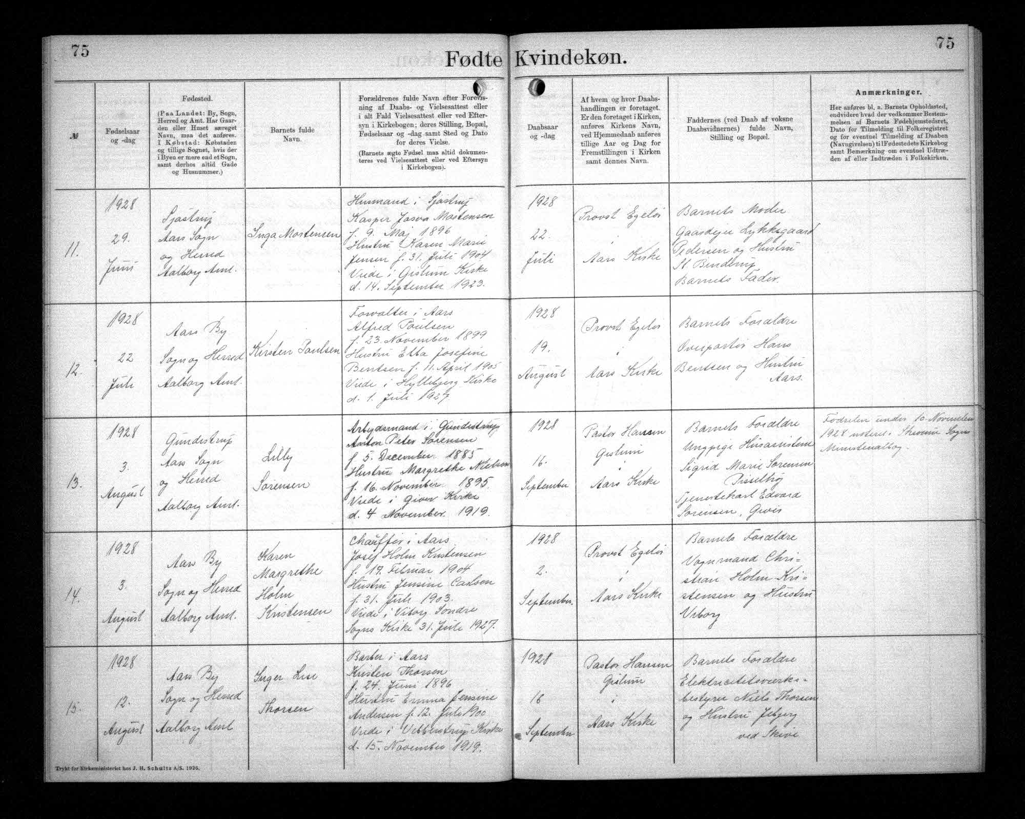 Aars Sogn Kontraministerialbog 1927 FKVD - 1932 FKVD, side 75, 19280902, Udarb. dato: 19 okt. 2018. Troværdighed: 4.