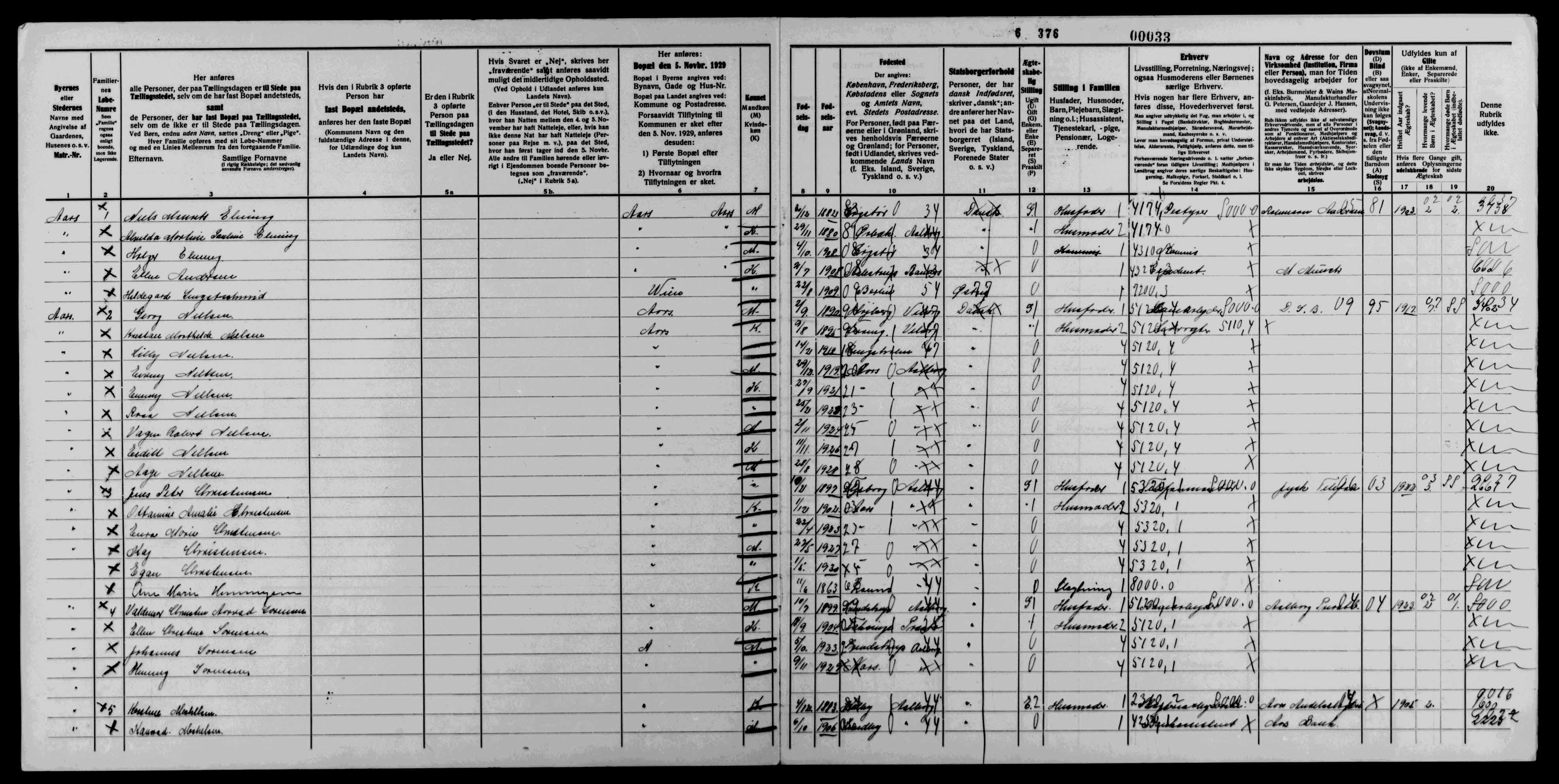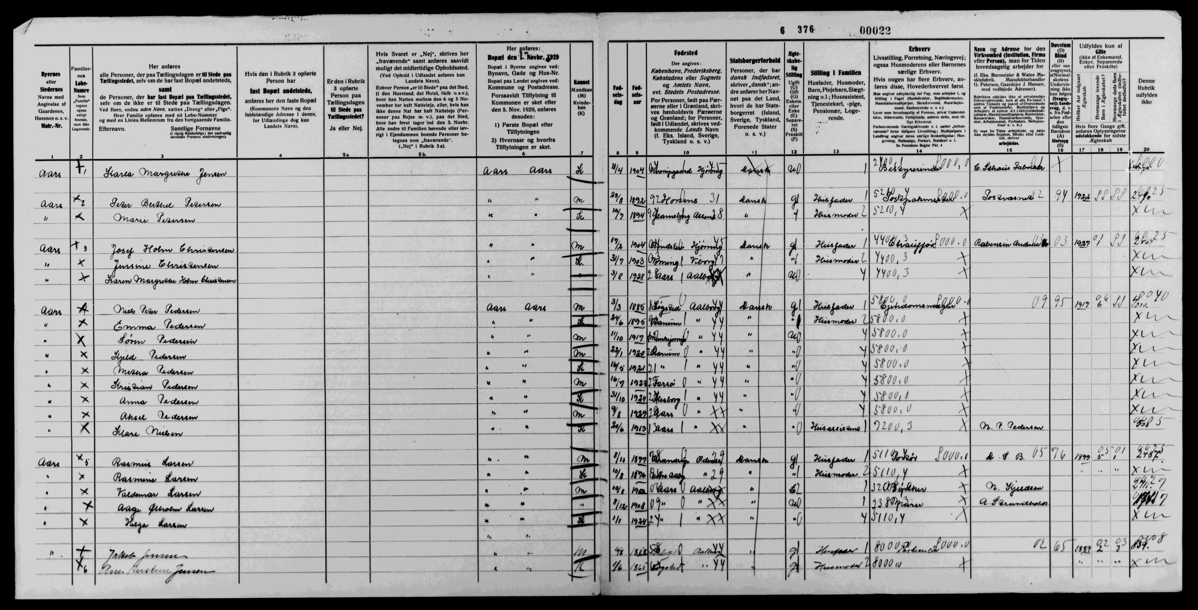 Folketælling, skema 9, side 1, 19301105 Aars, Aars, Aalborg Amt, Udarb. dato: 19 okt. 2018. Troværdighed: 4.