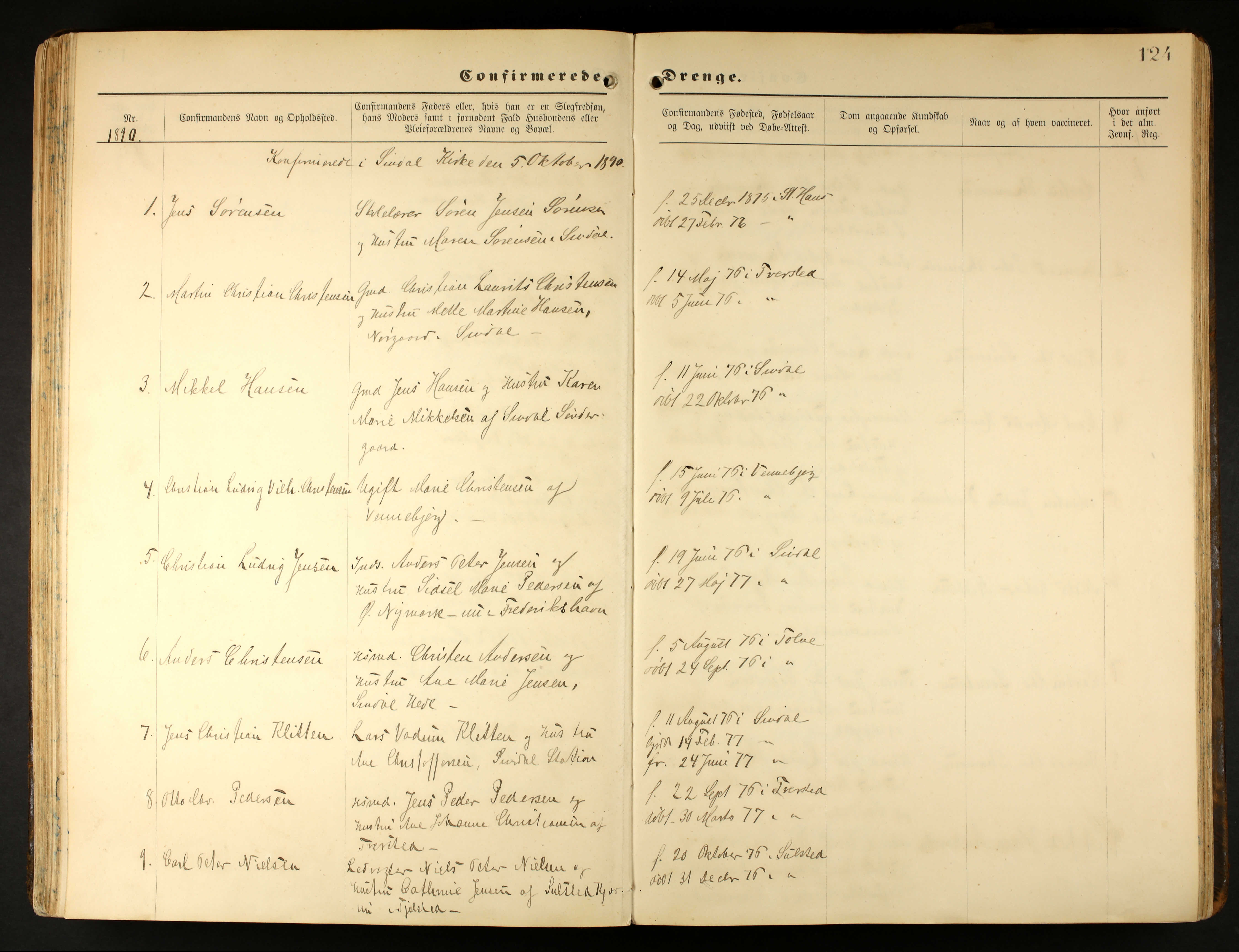 18901005 Kontraministerialbog, Sindal, Vennebjerg, Hjørring Amt, Confirmerede Drenge 1888-1891, folio 124, nr. 4, Arkiv: Rigsarkivet, Arkivalier Online. Udarb. dato: 22 okt. 2020. Troværdighed: 4.
