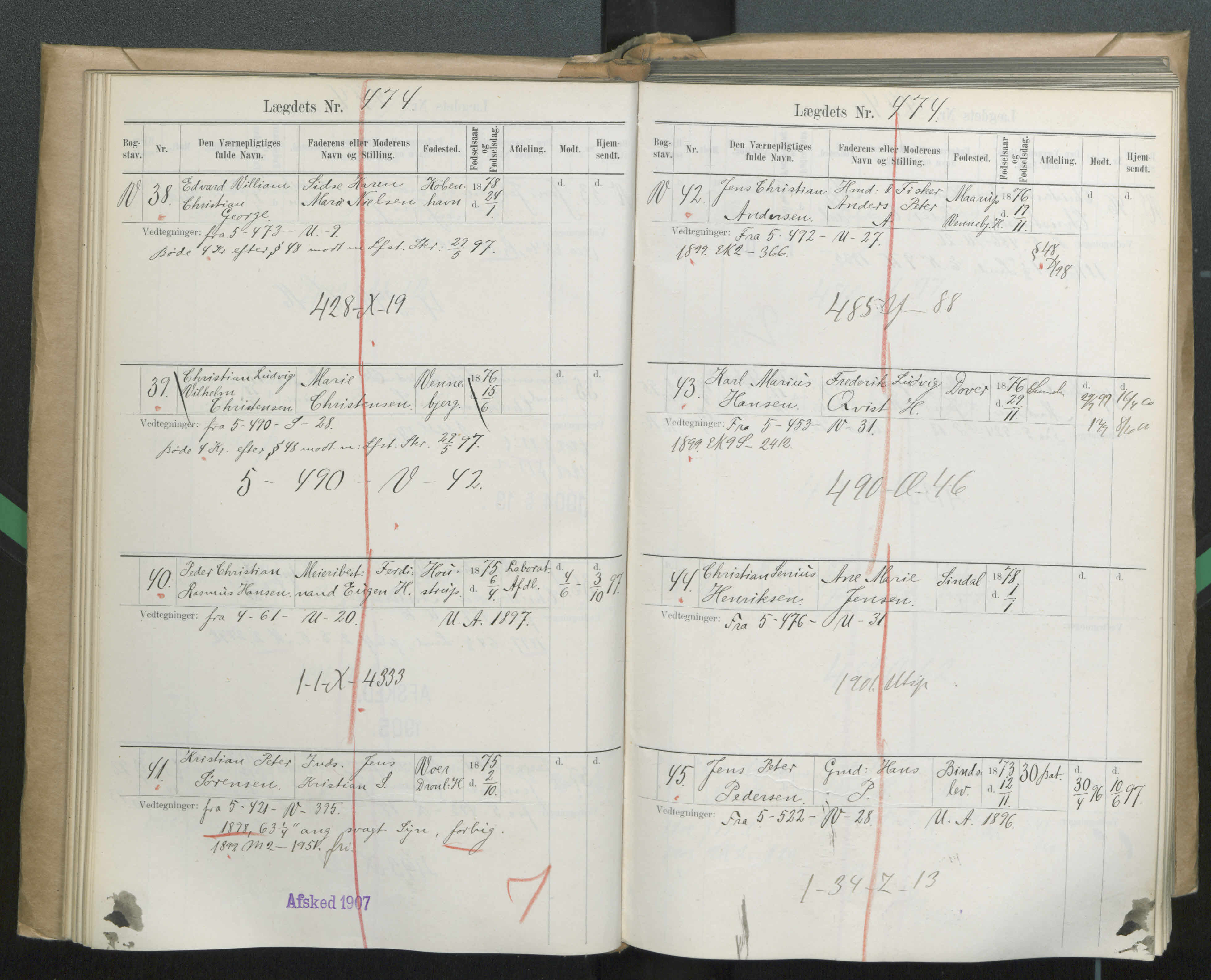 Justitsministeriet, 2. Ekspeditionskontor, Lægdsruller, 5. Udskrivningskreds, Tilgangsrulle 1897, Lægdets Nr. 474, Nr. 39, Arkiv: Rigsarkivet, Arkivalier Online. Udarb. dato: 7 mar. 2023. Troværdighed: 4.