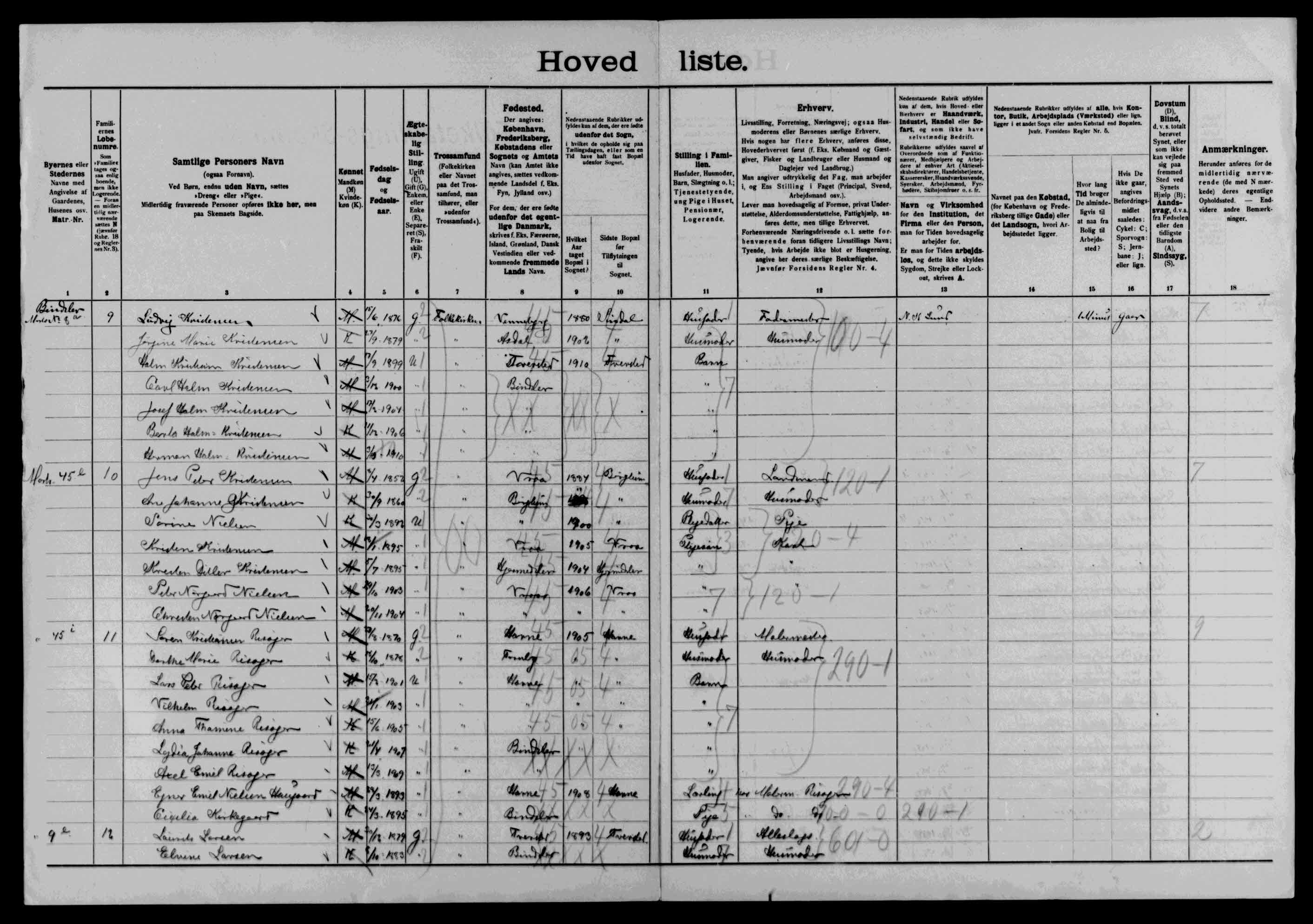 Folketællings-Skema nr. 10, Hovedliste side 2, Bindslev, Horns, Hjørring Amt, Udarb. dato: 19 okt. 2018. Troværdighed: 4.