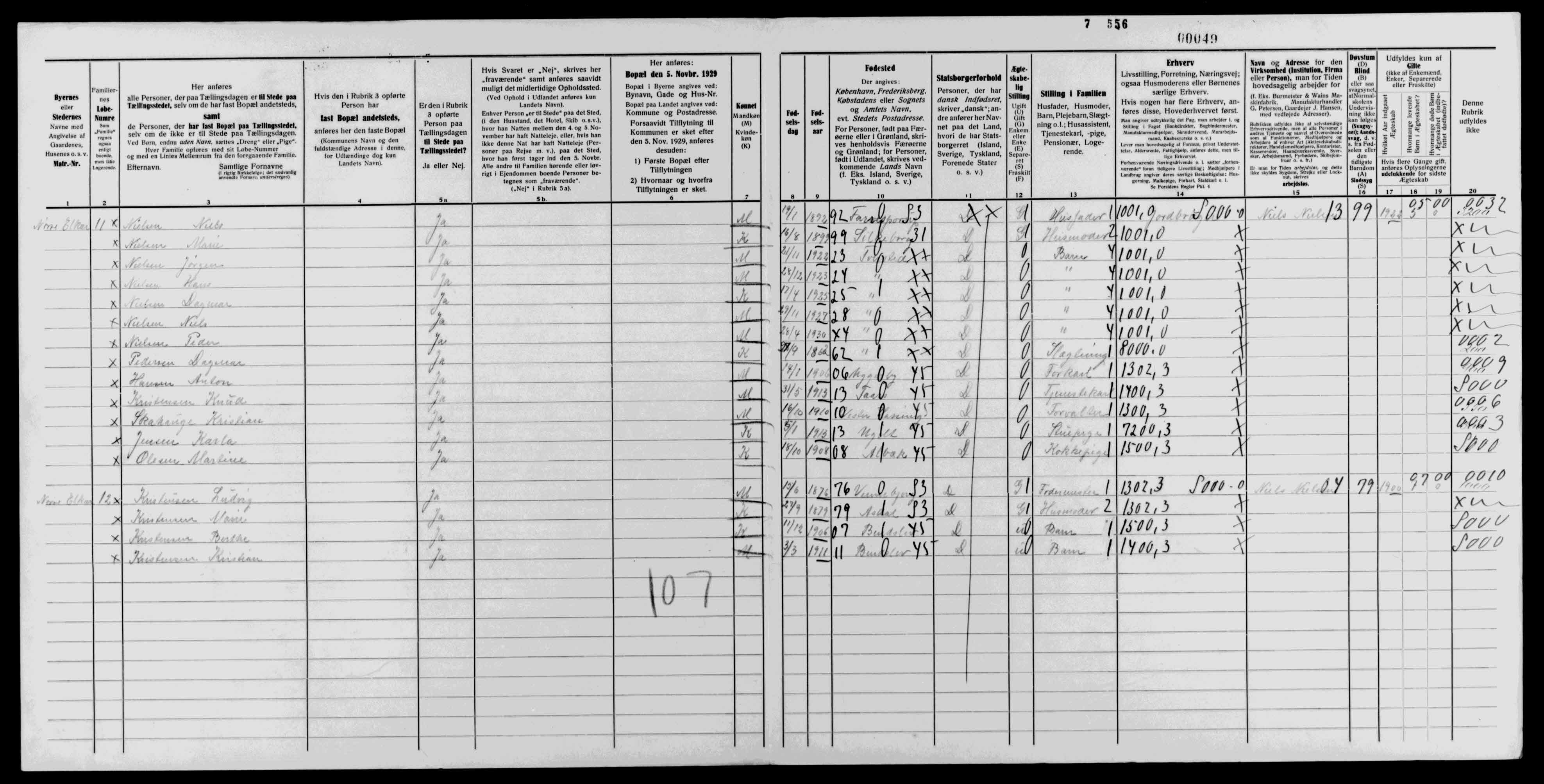 Folketælling 19301105, Skema nr. 19, Hovedliste side 1, familie nr. 12, Tversted, Horns, Hjørring Amt, Arkiv: Rigsarkivet, Arkivalier Online. Udarb. dato: 6 nov. 2021. Troværdighed: 4.