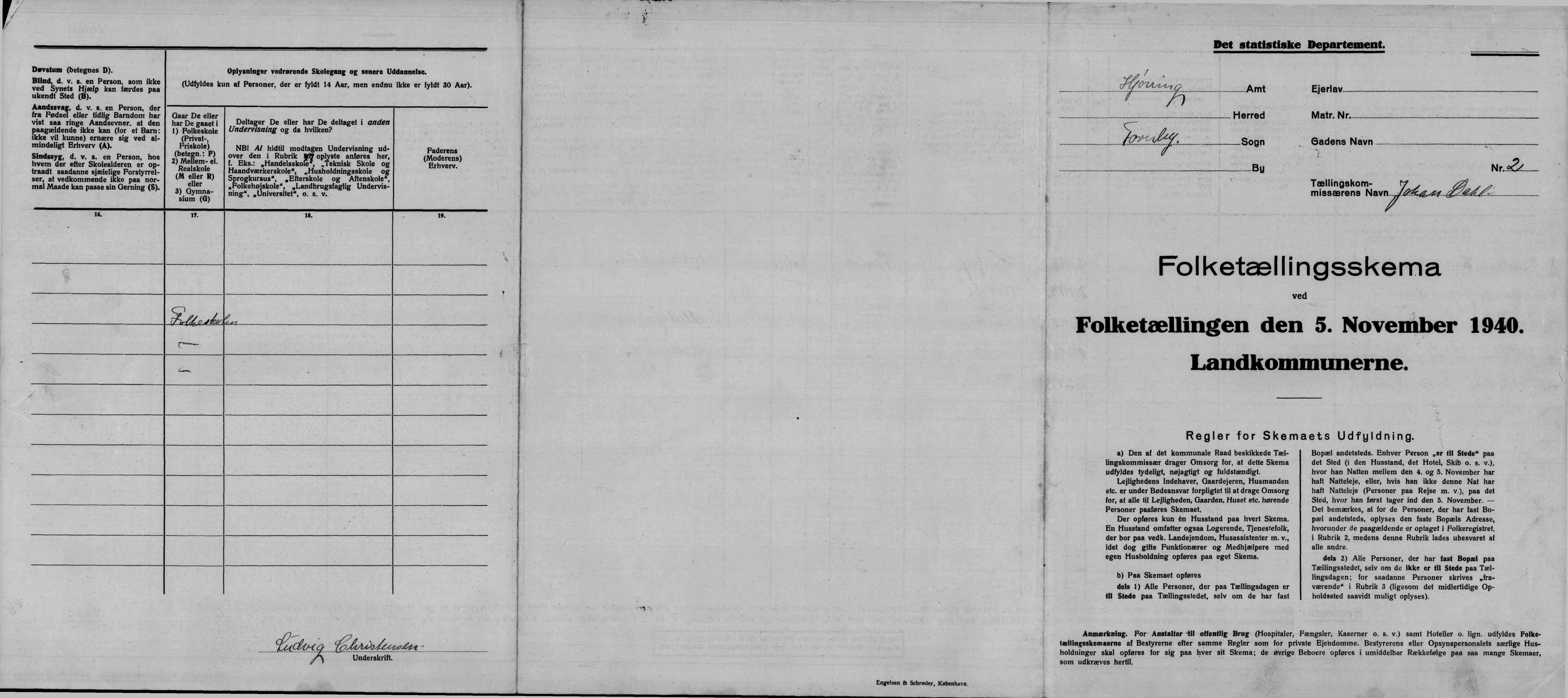 Folketælling 19401105, Tornby, Vennebjerg, Hjørring Amt, nr. 2, Arkiv: Rigsarkivet, Arkivalier Online. Udarb. dato: 21 jan. 2023. Troværdighed: 4.