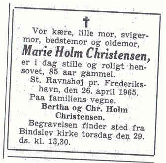 Dødsannonce efter Jørgine Marie Jakobsen Holm, Troværdighed: 0.