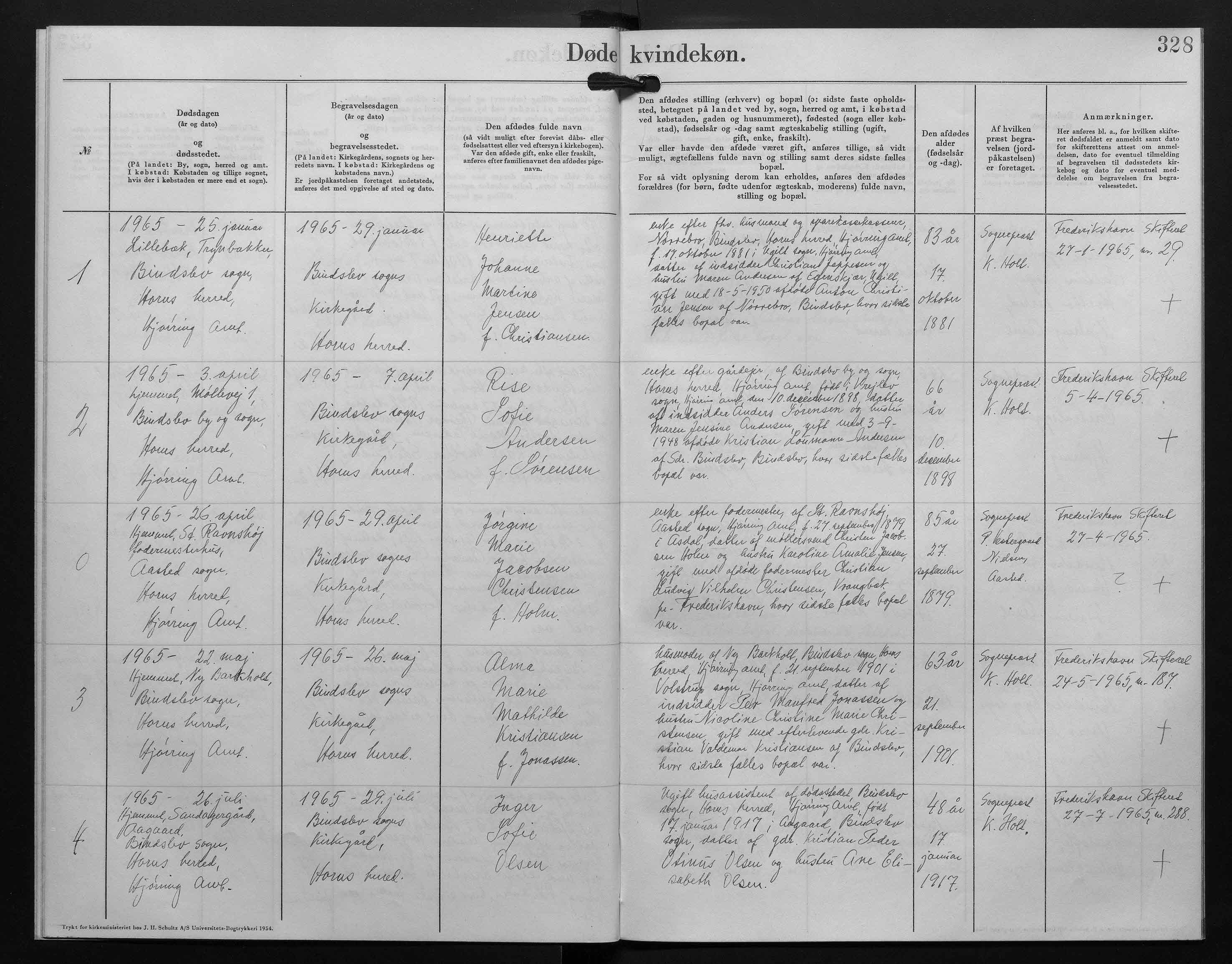 Kirkebog 1965 328 Bindslev, Horns, Hjørring, Udarb. dato: 25 okt. 2018. Troværdighed: 4.