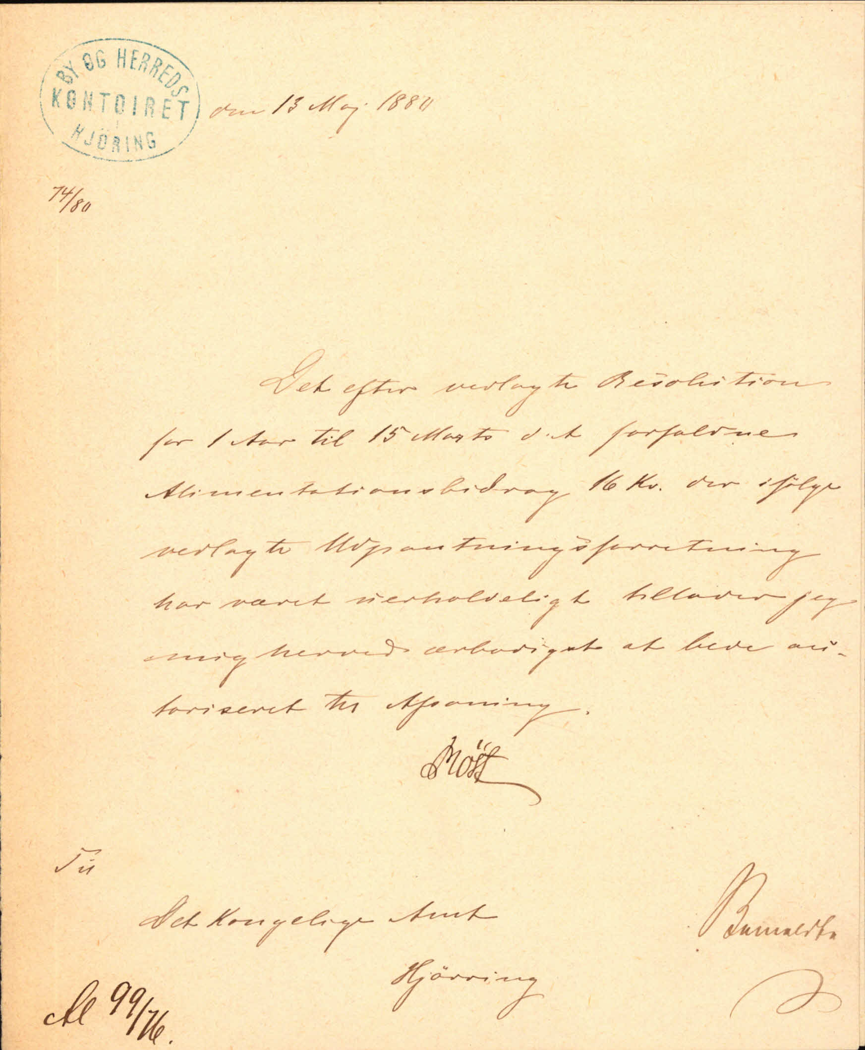 By og Herredskontoret Hjørring den 22. Juli 1880.